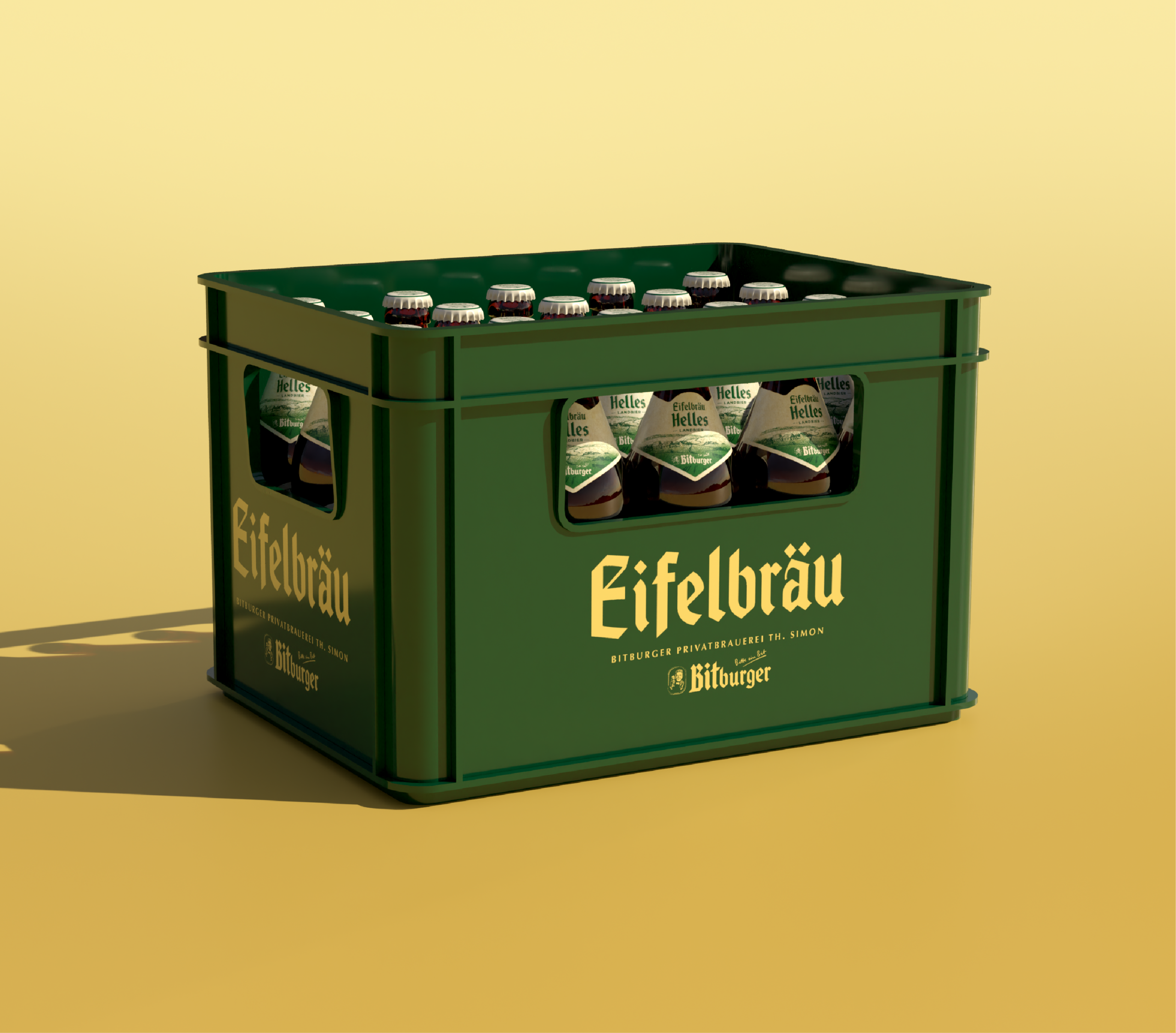 „Eifelbräu Helles“ ist unsere Antwort auf den stetig wachsenden Markt der hellen Biere. Um als Biermarke aus der Eifel das traditionell bayrische Produktkonzept authentisch und mit Fokus auf Regionalität zu spielen, tritt Bitburger erstmals als Endorser Brand unter der neuen Marke „Eifelbräu Helles“ auf. Die Wortmarke ist dabei klar aus der Bitburger Wortmarke abgeleitet und vermittelt gleichzeitig Tradition und Nostalgie, wie sie aus den Sehgewohnheiten bayrischer Hellbiere in der Kategorie gelernt sind. Das reduzierte Farbkonzept sowie ein puristisches Kastendesign betonen den bodenständigen Charakter der neuen Marke. Das Packaging Design wird durch ein plakatives Key-Visual mit ikonischer Produktdarstellung und eigenem Glas abgerundet.